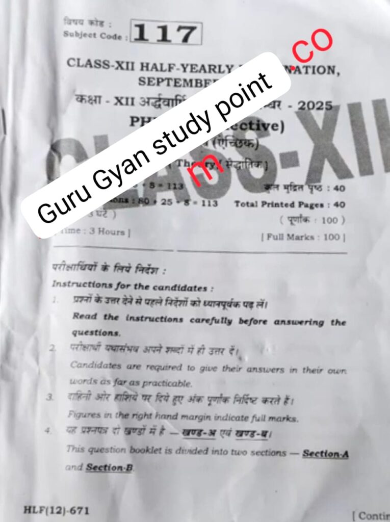 Class 12th Half Yearly Exam All Subject Question Paper 2025 : 12वीं अर्धवार्षिक परीक्षा 2025 का पेपर Best Link