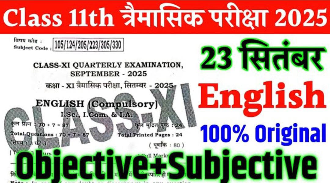 प्यारे बच्चों कक्षा 11वीं का त्रैमासिक परीक्षा सितंबर 2025 के लिए 19 सितंबर से 27 सितंबर के बीच में लिया जाएगा। कक्षा 11वीं त्रैमासिक परीक्षा का क्वेश्चन पेपर ...